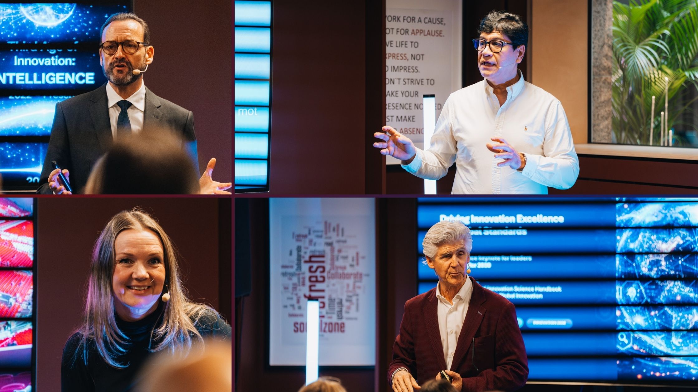 Neste taler tok for seg det globale perspektivet. Rowan Gibson – av Forbes beskrevet som en av verdens mest anerkjente innovasjonstenkere og kåret til «Global Leader of Innovation» – holdt et engasjert og svært godt innlegg om innovasjonsintelligens i en AI-drevet verden. Han viste også frem innsikts- og innovasjonsplattformen Zatory som det norske selskapet InnoZone har fått rettighetene til, og viste salen at innovasjonsoppgaver som tidligere tok 10-14 dager nå kunne gjøres unna på under 10 sekunder. Kombinasjonen AI med konkret og praktisk metodikk vekket STOR interesse hos mange.